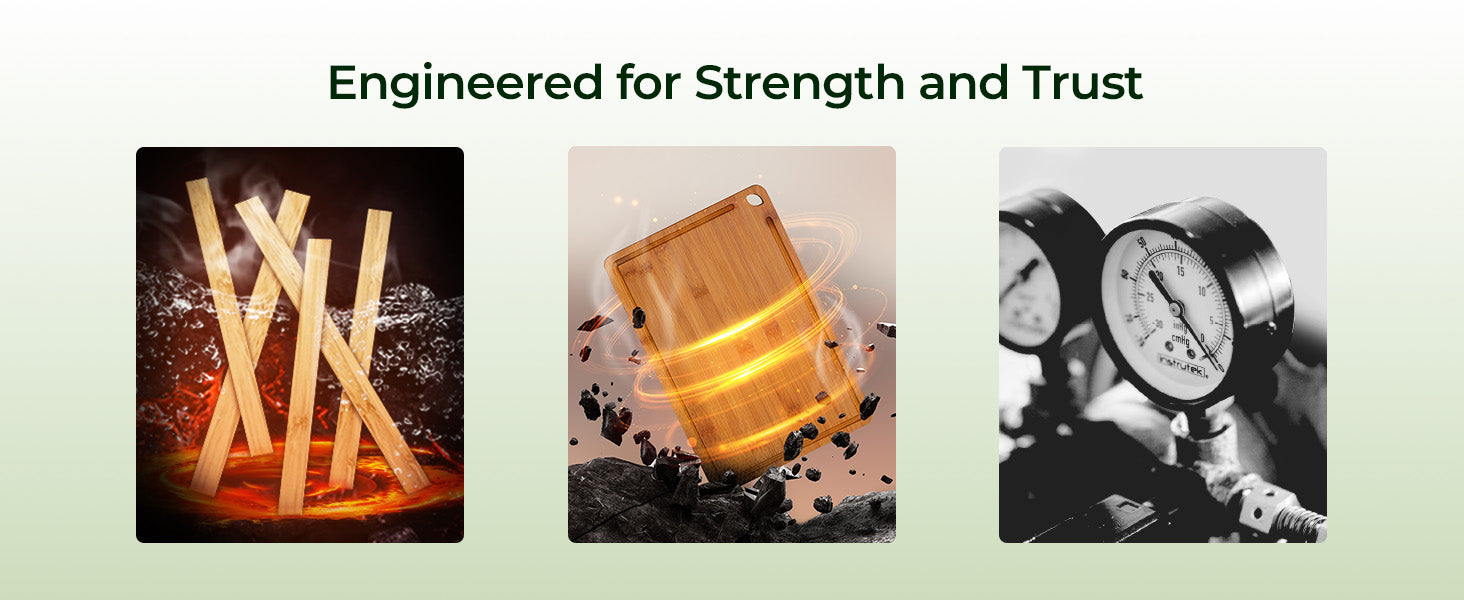 A:All our cutting boards are 100 % bamboo.Crafted from premium alpine bamboo, our carbonized boards are durable, water-resistant, and antimicrobial. Each board features a unique grain pattern, adding natural beauty to your kitchen.